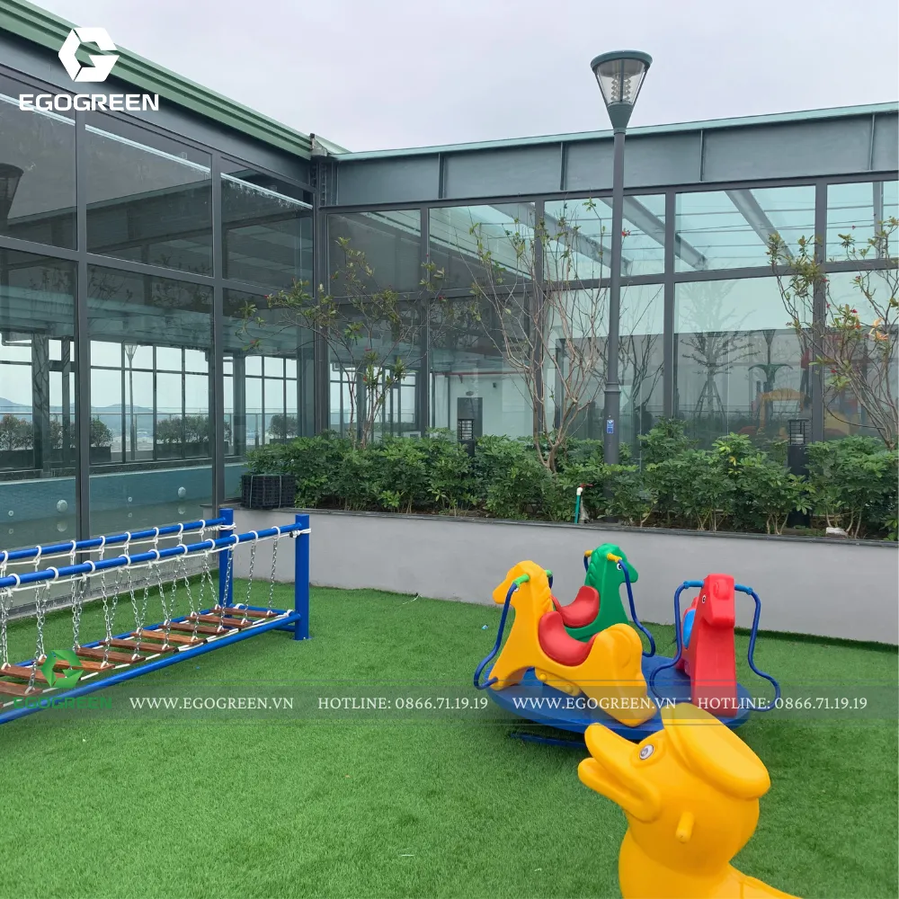 Một bãi cỏ mềm mại luôn là lựa chọn lý tưởng để trẻ chạy nhảy, lăn tròn hoặc vui đùa cùng bạn bè. Với những gia đình có trẻ nhỏ, sân chơi bằng cỏ, dù là cỏ tự nhiên mát chân hay cỏ nhân tạo êm ái, sạch sẽ đều mang đến cảm giác an toàn tuyệt đối.