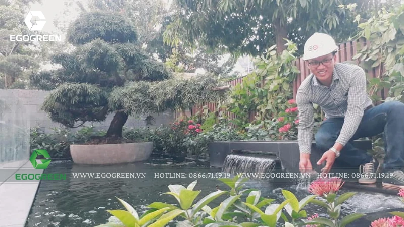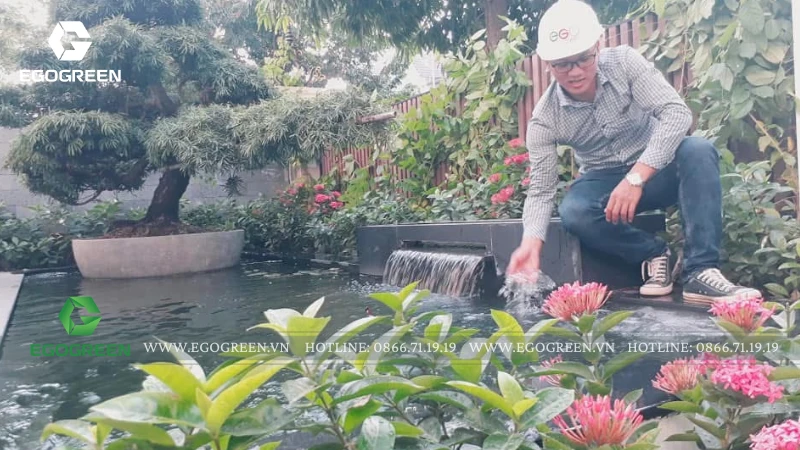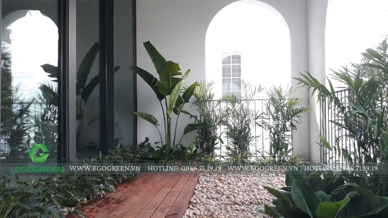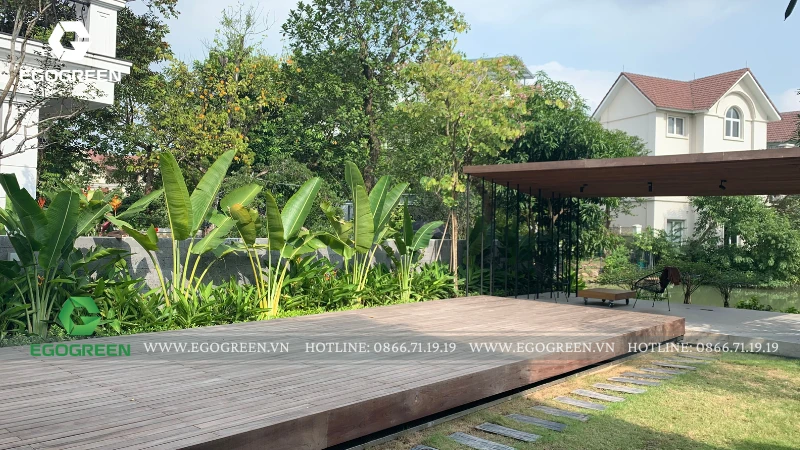 Tại căn biệt thự Anh Đào 839 – KĐT Vinhomes Riverside (Long Biên, Hà Nội), EGOGREEN – công ty thiết kế và thi công cảnh quan sân vườn hơn 10 năm kinh nghiệm, đã mang đến một không gian nhiệt đới nhiều tầng – nơi cây xanh, nước và ánh sáng hòa quyện để tạo nên một bản giao hưởng sống động của thiên nhiên.