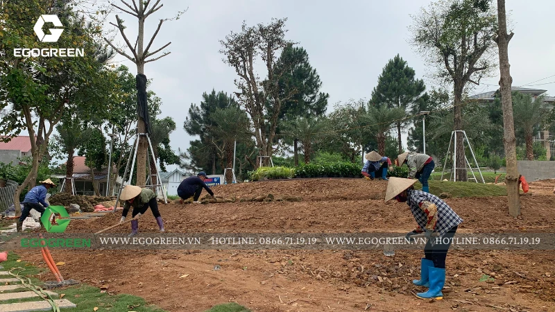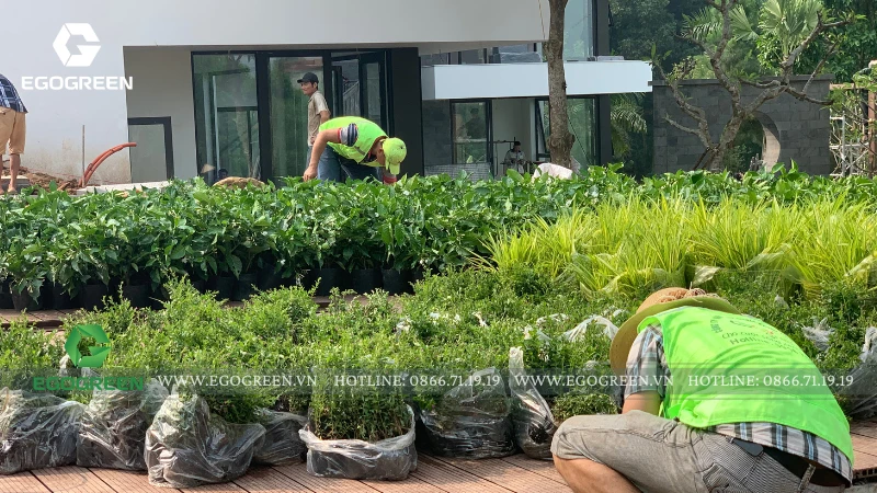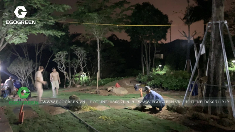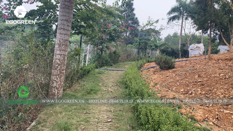 Với quy mô lớn, chúng tôi đã tích hợp hệ thống tưới tiêu tự động và đèn chiếu sáng sân vườn thông minh, giúp khu vườn luôn xanh tươi ban ngày và lung linh rực rỡ mỗi khi đêm về.
