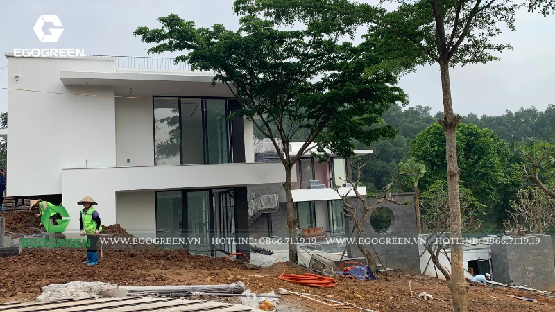 Giữa vùng đất yên bình của Ba Vì, EGOGREEN đã kiến tạo nên một khu sân vườn biệt thự hiện đại rộng hơn 2.000m² – nơi thiên nhiên, kiến trúc và cảm xúc hòa quyện trong một tổng thể hài hòa, sang trọng nhưng vẫn gần gũi.
