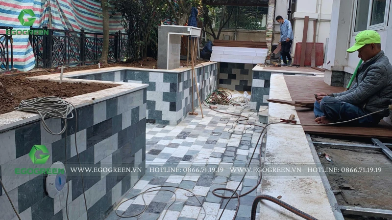 Phía sau nhà, EGOGREEN khéo léo bố trí ao cá Koi và bể bơi riêng tư, mang đến một không gian nghỉ dưỡng trọn vẹn, nơi gia chủ có thể tận hưởng sự yên bình và tinh tế giữa lòng đô thị — minh chứng rõ nét cho tay nghề, gu thẩm mỹ và tâm huyết mà EGOGREEN gửi gắm trong từng chi tiết.