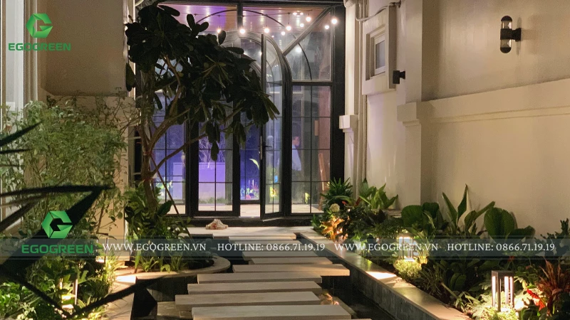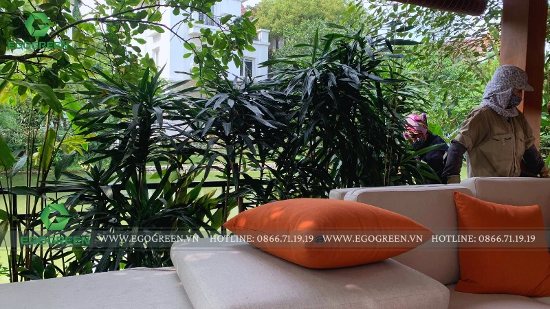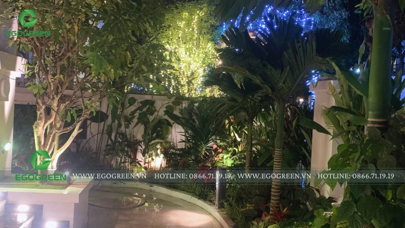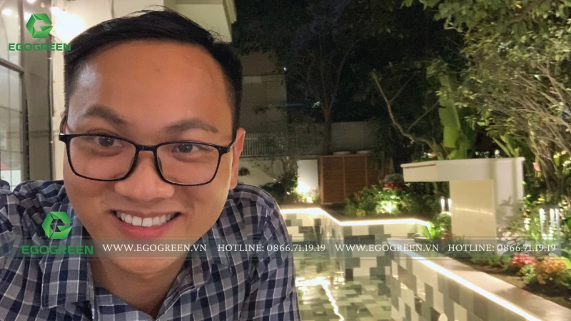Mảng xanh tươi mát, cây nhiệt đới và tiểu cảnh nước được EGOGREEN phối hợp hài hòa, tạo cảm giác gần gũi, thư thái nhưng vẫn sang trọng. Sau khi bàn giao, anh Độ bày tỏ sự hài lòng tuyệt đối khi khu vườn không chỉ đẹp về thẩm mỹ mà còn phản ánh đúng gu sống tinh tế và đẳng cấp của gia chủ.