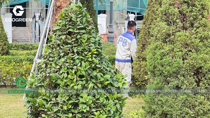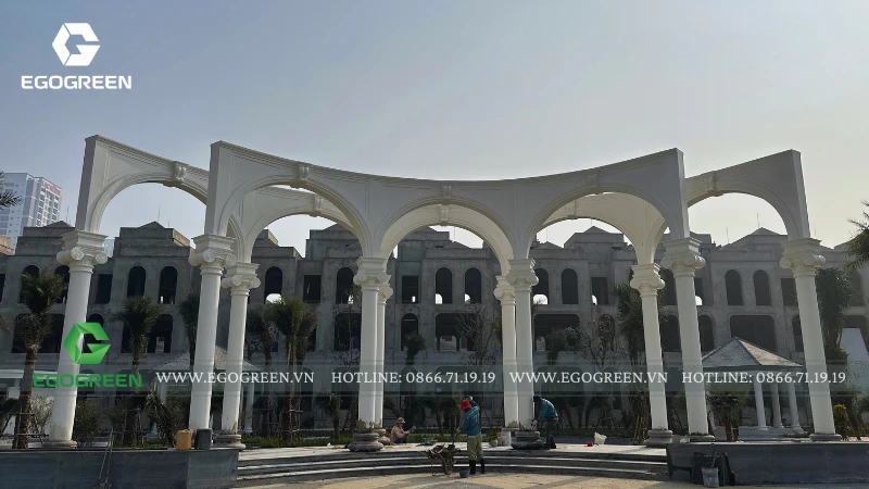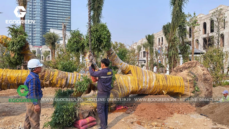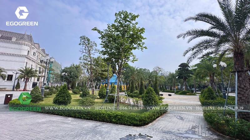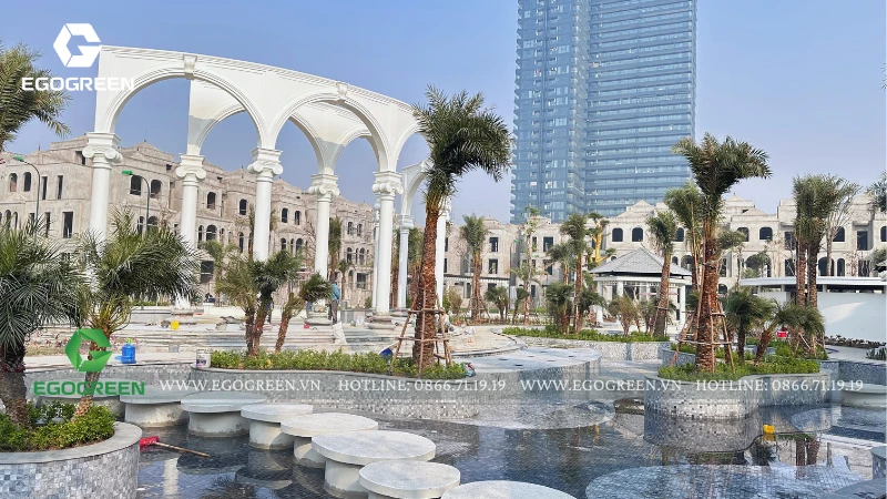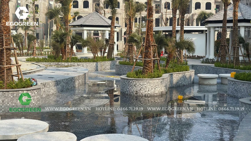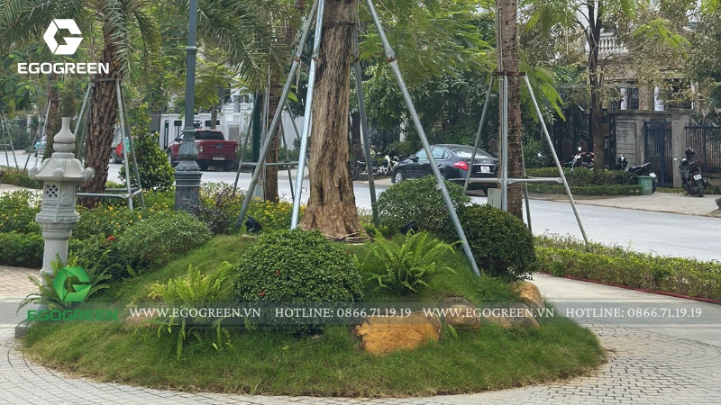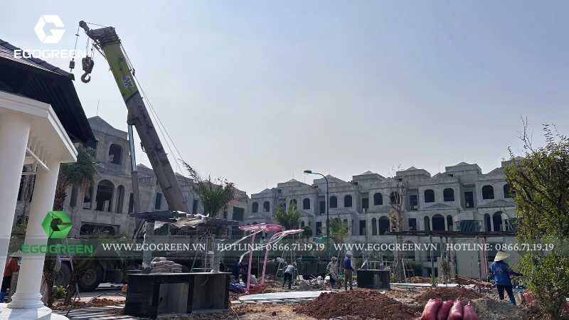 Đội ngũ của EGOGREEN làm việc đồng bộ từ thiết kế 3D mô phỏng, dựng cảnh quan mẫu, xử lý nền đất, lắp đặt hệ thống tưới tiêu, chiếu sáng, đến công đoạn trồng cây và chăm dưỡng sau bàn giao.