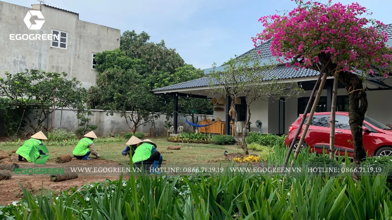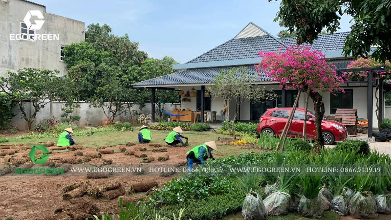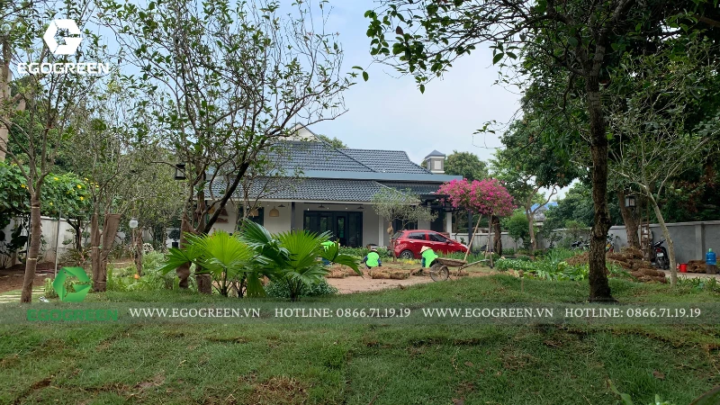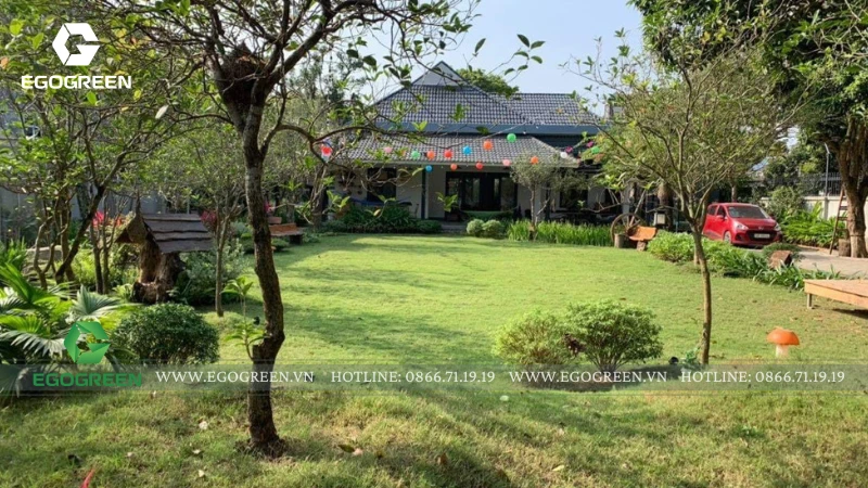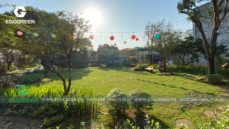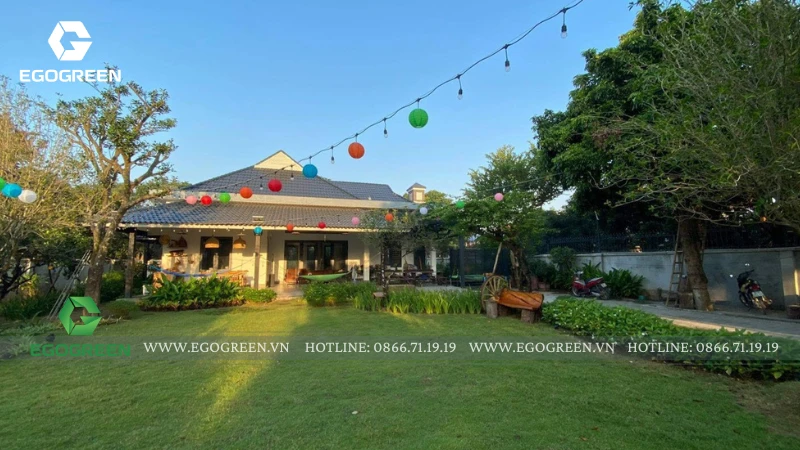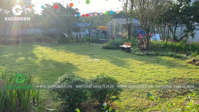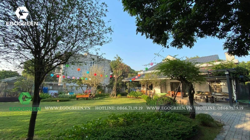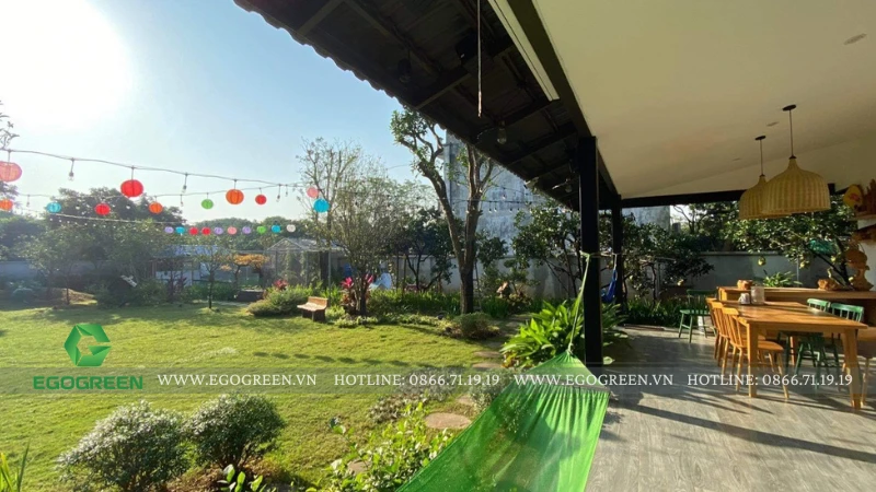 Trên khu đất rộng 1.500m² tại Quốc Oai (Hà Nội), đội ngũ 10 năm kinh nghiệm của EGOGREEN đã kiến tạo nên một không gian sân vườn hiện đại mang hơi hướng Á Đông, vừa phóng khoáng, vừa gần gũi, gắn kết con người với thiên nhiên.