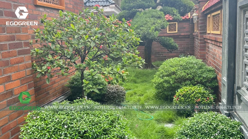 Ngay tại Lương Xá - Hưng Yên, EGOGREEN có cơ duyên đồng hành cùng anh Tuấn kiến tạo sân vườn cho tổ hợp quần thể nhà và từ đường trên tổng diện tích 500m2.