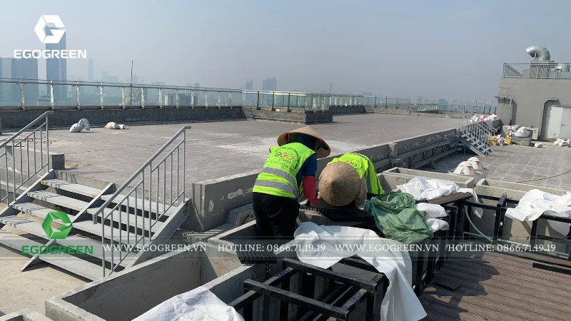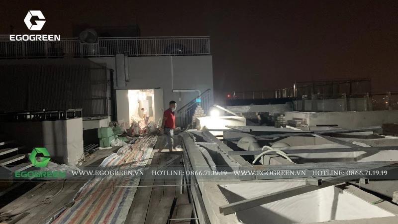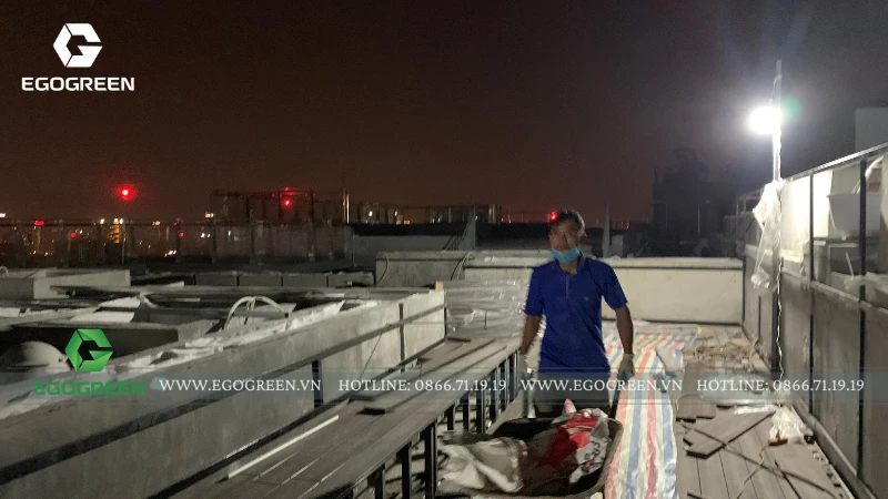 Đặc biệt, để đảm bảo trật tự và an toàn cho cư dân tòa nhà, toàn bộ quá trình thi công được EGOGREEN thực hiện vào ban đêm, với quy trình khép kín, hạn chế tiếng ồn, kiểm soát kỹ khâu vận chuyển và lắp đặt. Sự chỉn chu trong từng chi tiết giúp công trình không chỉ đẹp mà còn hài hòa với môi trường sống xung quanh đúng với tinh thần “Vì không gian xanh, đậm chất riêng của bạn” của EGOGREEN.