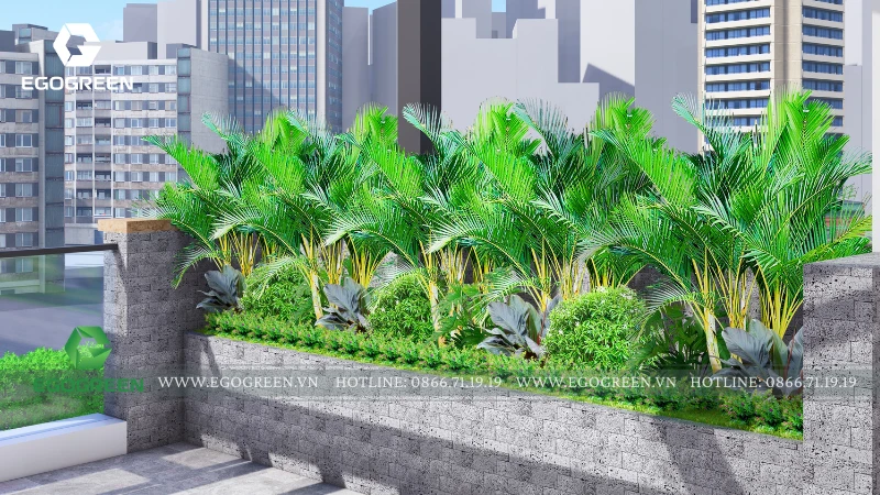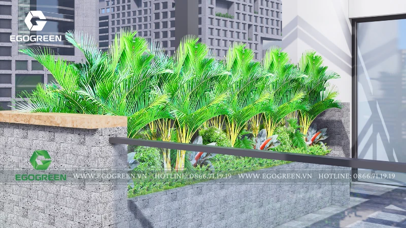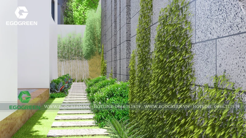 Tổng thể thiết kế của dự án sân vườn này thể hiện rõ triết lý của EGOGREEN chúng tôi: không chỉ trồng cây cho đẹp, mà tổ chức cảnh quan như một phần của đời sống. Từ dưới đất lên tới mái, mỗi không gian đều có vai trò riêng, gắn kết với nhau để tạo nên một ngôi nhà phố hiện đại nhưng vẫn xanh mát, thư thái và bền vững theo thời gian.
