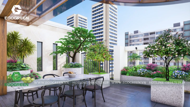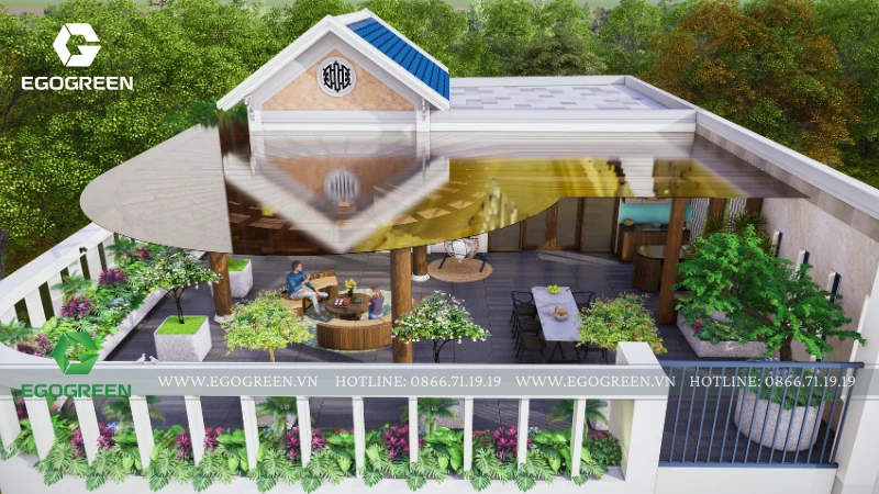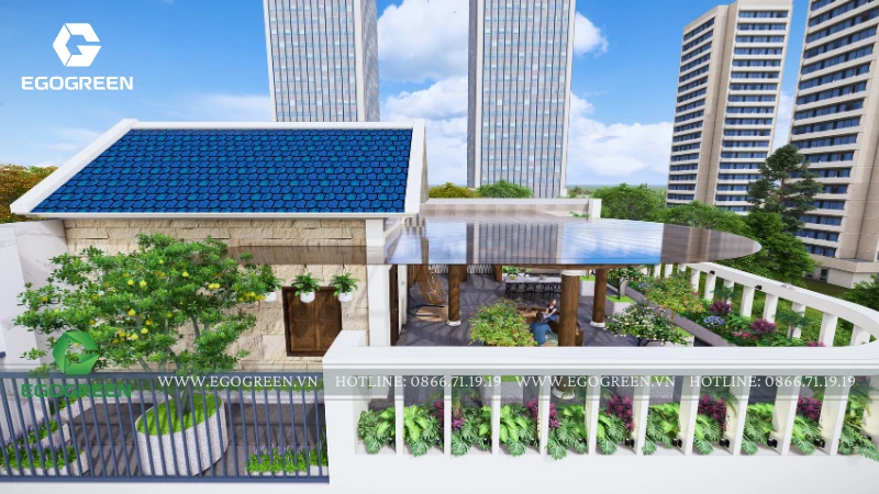 Tổng thể thiết kế thể hiện rõ triết lý của EGOGREEN: không chỉ tạo ra một khu vườn đẹp trên mái, mà còn kiến tạo một không gian sống chất lượng, nơi gia chủ có thể tận hưởng thiên nhiên, cân bằng nhịp sống đô thị và tìm thấy những khoảnh khắc an yên mỗi ngày.
