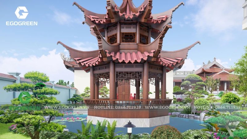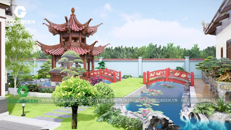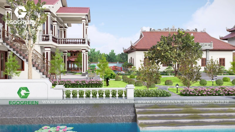 Không gian sân trung tâm và vườn thiền được tổ chức như nơi dừng chân, tĩnh tâm cho tăng ni, phật tử. Mặt nước, cây xanh và cảnh quan được kết hợp hài hòa, giúp giảm bức xạ nhiệt, điều hòa khí hậu và tạo sự yên bình. Tổng thể quá trình thiết kế cảnh quan chùa Đồng thể hiện rõ triết lý của EGOGREEN: lấy thiên nhiên làm nền cho kiến trúc tâm linh, kiến tạo không gian không chỉ đẹp về hình thức mà còn nuôi dưỡng cảm xúc an lạc, tĩnh tại và bền vững theo thời gian.