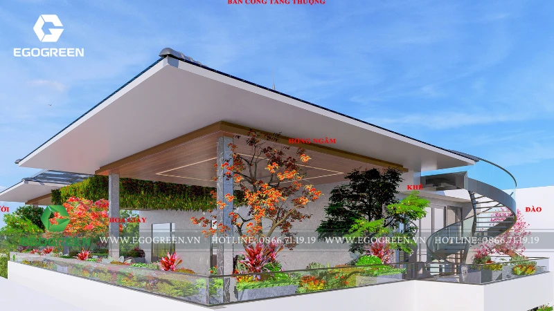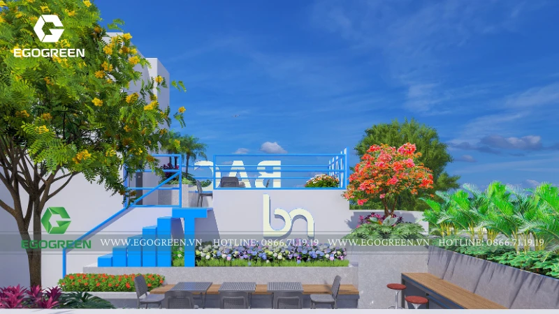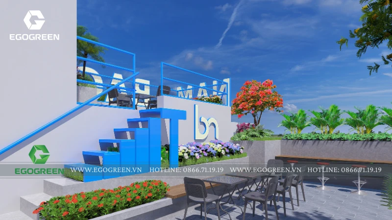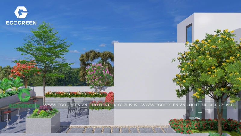 Dự án thiết kế khu vườn trên mái nhà này là một không gian xanh mang phong cách hiện đại, được EGOGREEN phát triển với mục tiêu biến sân thượng khô cứng thành nơi nghỉ ngơi thư giãn lý tưởng giữa đô thị. Khu vườn không chỉ đóng vai trò trang trí mà còn là không gian sinh hoạt ngoài trời, nơi gia đình, bạn bè và mọi người có thể tận hưởng không khí trong lành, ánh nắng và gió trời mỗi ngày. Quá trình thiết kế bắt đầu từ việc đánh giá hiện trạng sân mái: diện tích sử dụng, khả năng chịu tải, hướng nắng – hướng gió và hệ thống thoát nước.