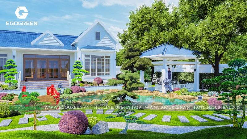 Dự án thiết kế sân vườn biệt thự anh Huy tại Ba Vì được EGOGREEN phát triển theo phong cách sân vườn Nhật Bản, lấy sự tĩnh tại, cân bằng và gắn kết gia đình làm trung tâm. Ngay từ giai đoạn khảo sát, đội ngũ thiết kế đã dành nhiều thời gian trao đổi để hiểu rõ nhịp sống của gia đình: ngôi nhà có bố mẹ anh Huy đã lớn tuổi sinh sống thường xuyên, khu vườn vì thế không chỉ để ngắm mà còn là không gian đi dạo, thư giãn mỗi ngày; đồng thời vào cuối tuần, đây là nơi con cháu quây quần, sum họp đông đủ.