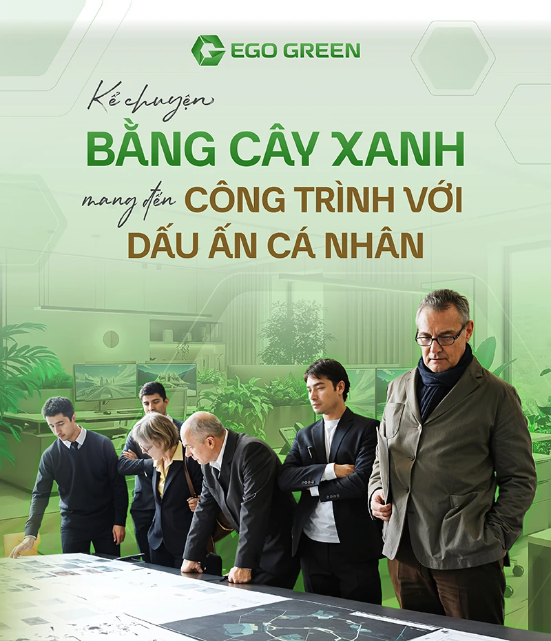 EGOGREEN là đơn vị tiên phong trong lĩnh vực tư vấn thiết kế và thi công cảnh quan cây xanh tại Việt Nam. Chúng tôi mang trong mình sứ mệnh kiến tạo những không gian sống xanh – thẩm mỹ – cá tính, nơi thiên nhiên hòa quyện cùng con người trong từng chi tiết, nơi chúng ta được chữa lành và trở về với chính mình!